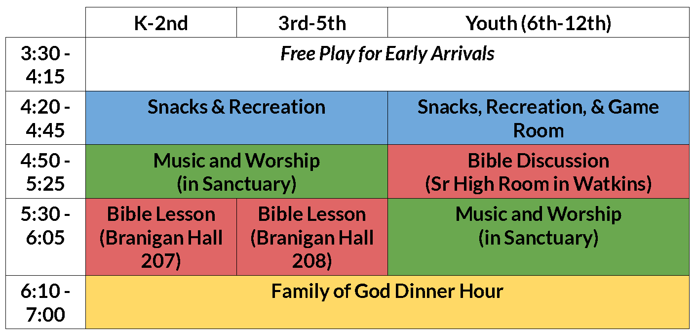 Salt and Light’s check-in and check-out area is on the NE side of the church campus (the East entrance to Reeves Hall). There, you will find volunteers ready to register your child in person if they haven’t done so online already. Check the map on our Plan on Visiting Page to get a sense for where Reeves Hall is!